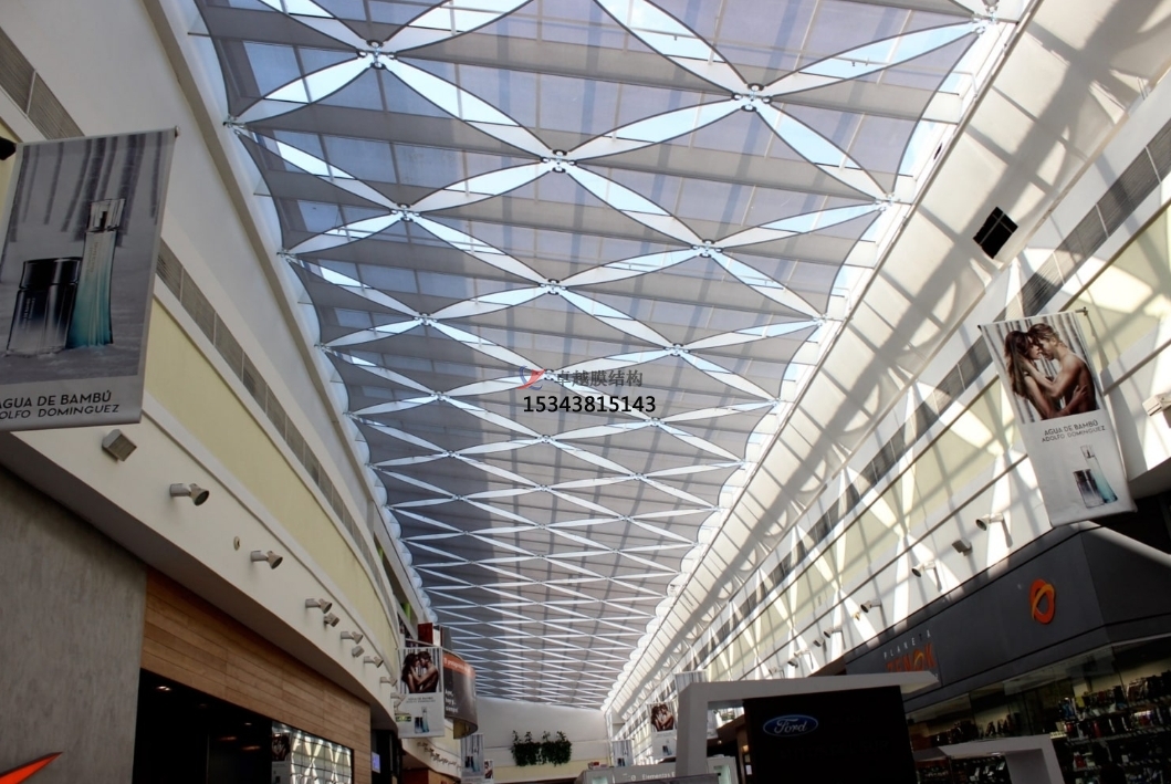 此外,PTFE膜結(jié)構(gòu)的薄膜具有一定的透光性,能夠有效利用自然光線,降低室內(nèi)照明能耗,能夠遮擋紫外線和紅外線,減少太陽(yáng)輻射對(duì)建筑內(nèi)部的熱負(fù)荷,實(shí)現(xiàn)能源的節(jié)約和環(huán)境的保護(hù);而且PTFE膜結(jié)構(gòu)能夠通過(guò)不同的張拉和固定方式,創(chuàng)造出各種形態(tài)的建筑設(shè)計(jì)。它可以形成曲線、弧線、折線等多樣化的形狀,滿足建筑師對(duì)于獨(dú)特外觀和創(chuàng)新設(shè)計(jì)的需求。