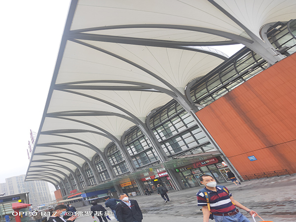由于膜結(jié)構(gòu)建筑比較寬,由以上5張照片接成,但形成了一個(gè)錯(cuò)覺,建筑仿佛是弧形的了。.