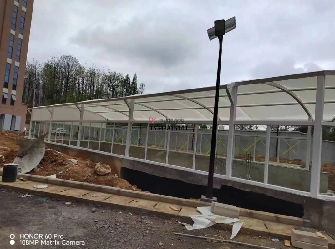 膜結(jié)構(gòu)雨棚的設(shè)計(jì)靈活多樣,可以根據(jù)實(shí)際情況進(jìn)行定制。同時(shí),其建設(shè)周期相對(duì)較短,能夠快速搭建,提高了施工效率。