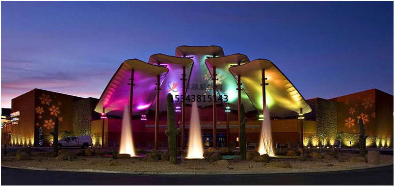亞克麗處理的膜材一般用于帳篷、卡車篷布或廣告布,其使用壽命短、抗拉強度低,一般不用于膜結構建筑;可焊接型Pvc類膜材,表面PVDF涂層濃度較低,膜材幾乎沒有自潔性,但價格非常便宜;