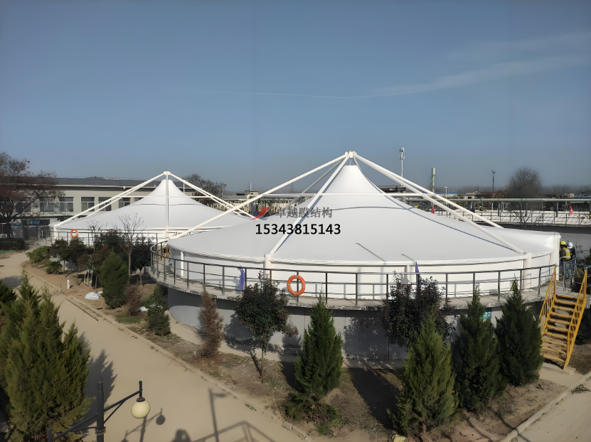 :具有現(xiàn)代建筑膜結(jié)構(gòu)的特點(diǎn),造型飄逸美觀,能與周圍環(huán)境相融合,提升廠區(qū)整體品質(zhì)。