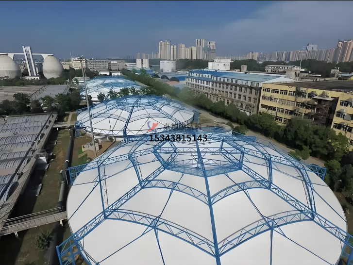 :鋼結(jié)構(gòu)制作和膜體加工都在工廠進(jìn)行,現(xiàn)場(chǎng)安裝時(shí)間短,減少場(chǎng)地占用,舊池體改造項(xiàng)目可采取結(jié)構(gòu)整體吊裝,不影響池體內(nèi)部設(shè)備運(yùn)轉(zhuǎn)。