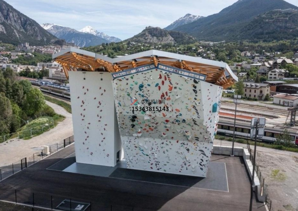 由建筑師Grégory Poles及其6B建筑事務(wù)所設(shè)計,這座攀巖塔提供了超過1000平方米的攀巖面積和130條線路,覆蓋了三大攀巖競賽項目——難度攀巖、速度攀巖和抱石攀巖。建筑以一根鋼支柱為核心,支撐著多個攀巖面,其頂部設(shè)有木質(zhì)屋頂結(jié)構(gòu),并覆蓋法拉利STFE“軟玻璃”膜材。這一設(shè)計確保攀巖者無論天氣如何都能進行訓(xùn)練和比賽。