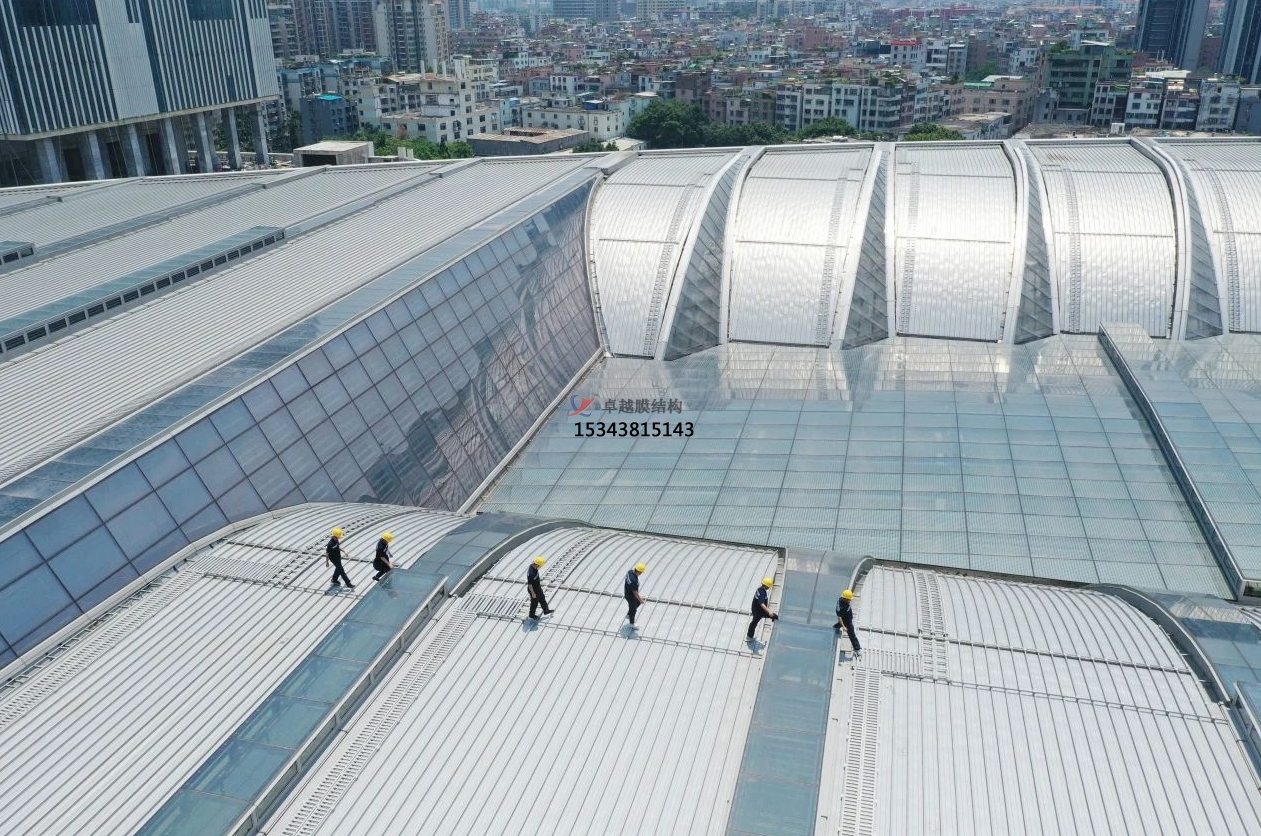 在施工方面,高鐵站膜結構的施工速度快,工期短。由于膜結構的構件可以在工廠預制,現(xiàn)場安裝,大大減少了現(xiàn)場施工的工作量和施工時間。同時,膜結構的施工對周圍環(huán)境的影響較小,能夠有效地減少施工噪音和粉塵污染,保護了周邊居民的生活環(huán)境。