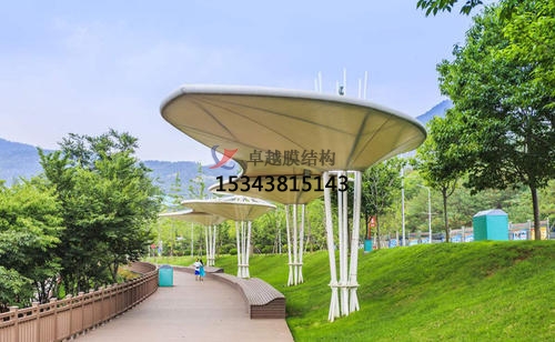 一個城市的中心區(qū)反映一個城市的地理面貌和民族風(fēng)情,也是一個城市文化開展程度的標(biāo)志。而景象規(guī)劃要求其具有廣泛的可讀性、雅俗共賞,既有超凡脫俗的藝術(shù)價值,又能使群眾膾炙人口與群眾息息相通。張拉膜景觀以其輕盈瀟灑的造型、柔美并帶有力氣的曲線和大跨度和大空間的鮮明個性和標(biāo)識性,使用于城市小品規(guī)劃中。 景象張拉膜景觀工程能供給豐富多彩的用處,并與園林景象溶為一體。發(fā)明出讓人們盡情享用的快樂空間。充分展現(xiàn)了結(jié)構(gòu)構(gòu)件清晰受力的藝術(shù)之美,它巧妙的整合周圍的環(huán)境,給人們一種高雅、浪漫溫馨之感。