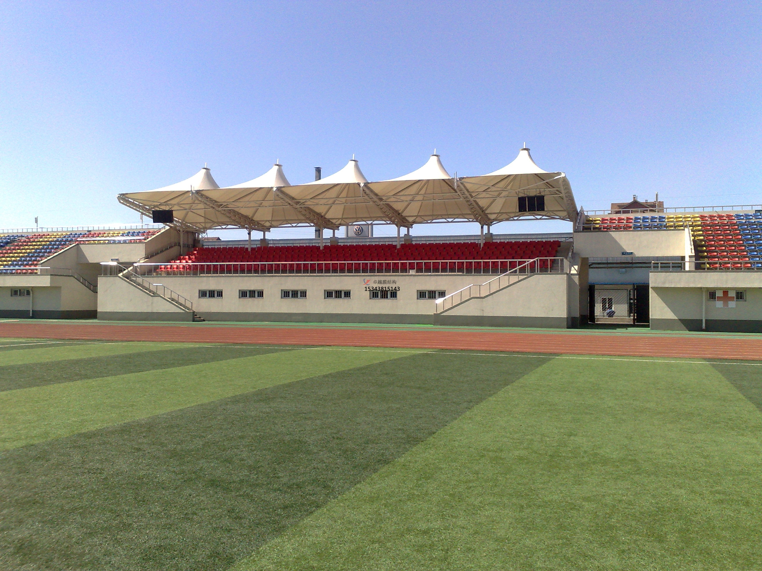 膜結(jié)構(gòu)看臺(tái)外形優(yōu)美、材料環(huán)保性更好、制作周期較短、清潔工作更加簡(jiǎn)單方便。