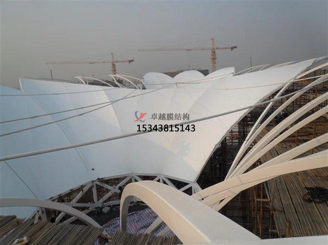 3,膜結構景觀內部選用Φ38鍍鋅圓管與車棚結構焊接,加蓋膜結構污水池增強棚頂部強度,可讓棚內感覺寬闊通亮,停靠車輛輕松方便,完全吻合膜結構景觀制造要求標準;