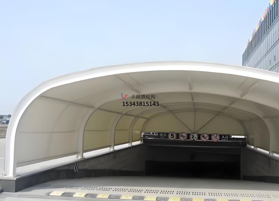 總之,車庫出入口膜結(jié)構(gòu)頂棚是一種集實用、美觀、環(huán)保和經(jīng)濟效益于一體的創(chuàng)新建筑形式。它的出現(xiàn)為現(xiàn)代建筑的發(fā)展提供了新的思路和方向,相信在未來的建筑領(lǐng)域中,膜結(jié)構(gòu)頂棚將會得到更加廣泛的應(yīng)用和發(fā)展。