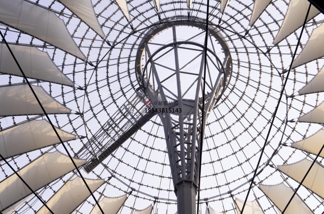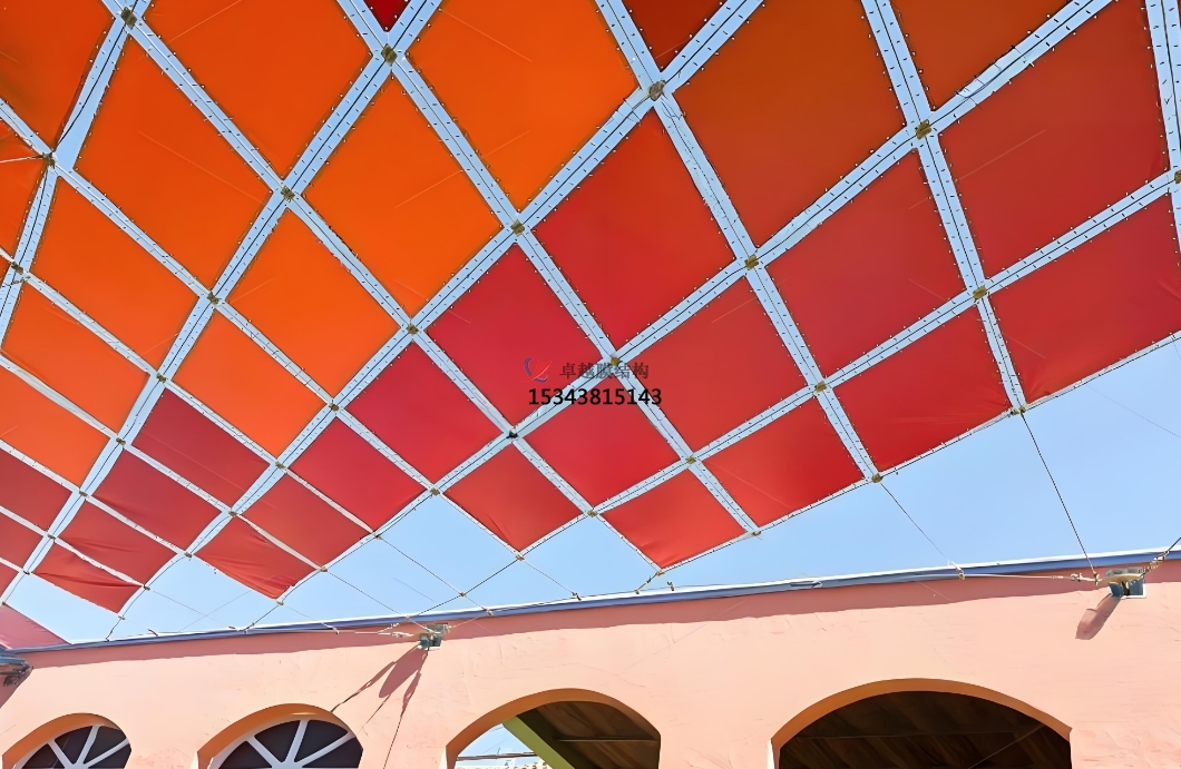 支撐體系則包括拉索、桅桿、拱等結(jié)構(gòu)部件。拉索如同整個(gè)結(jié)構(gòu)的 “筋骨”,通過合理布置,將膜材張拉至預(yù)定形狀,為膜材提供穩(wěn)定的支撐力。桅桿和拱等作為主要的豎向或曲線支撐,與拉索協(xié)同工作,共同確定膜結(jié)構(gòu)的空間形態(tài)。其原理基于力的平衡,利用膜材的張力和拉索的拉力相互作用,使整個(gè)結(jié)構(gòu)處于穩(wěn)定的受力狀態(tài),如同一張被精心張緊的巨型 “織物”,在風(fēng)中展現(xiàn)出獨(dú)特的力學(xué)美感。
