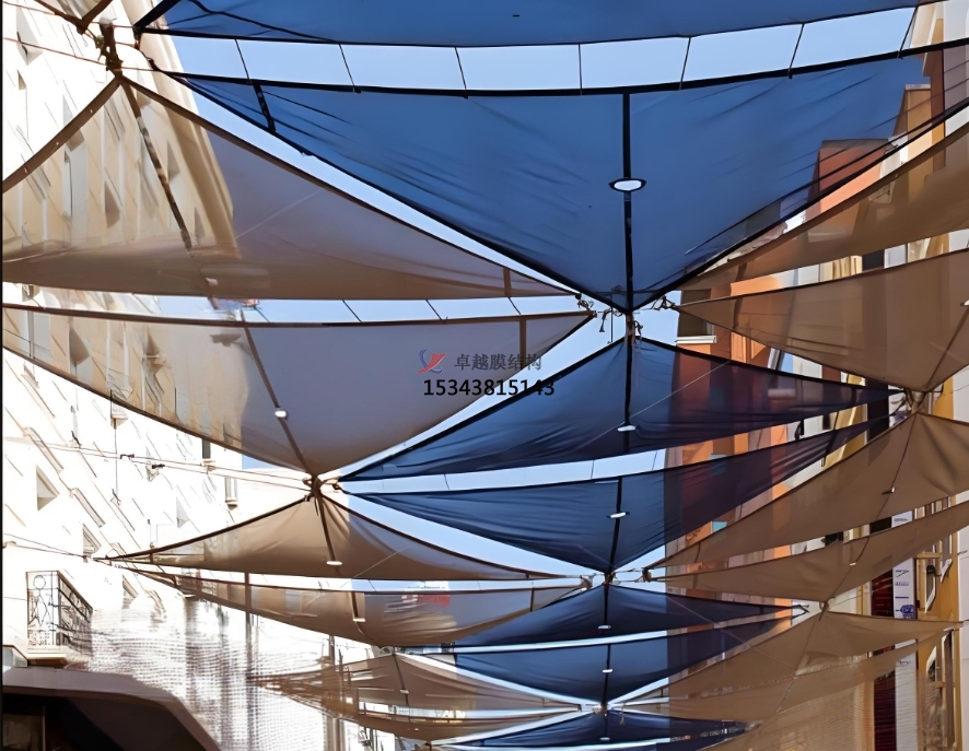 在商業(yè)領(lǐng)域,索膜結(jié)構(gòu)常被用于購物中心、步行街的入口雨篷、中庭遮陽等。其獨(dú)特的造型可以吸引消費(fèi)者的目光,營造出富有活力的商業(yè)氛圍。同時(shí),膜結(jié)構(gòu)的遮陽功能還能為顧客提供舒適的購物環(huán)境,減少陽光直射帶來的不適。