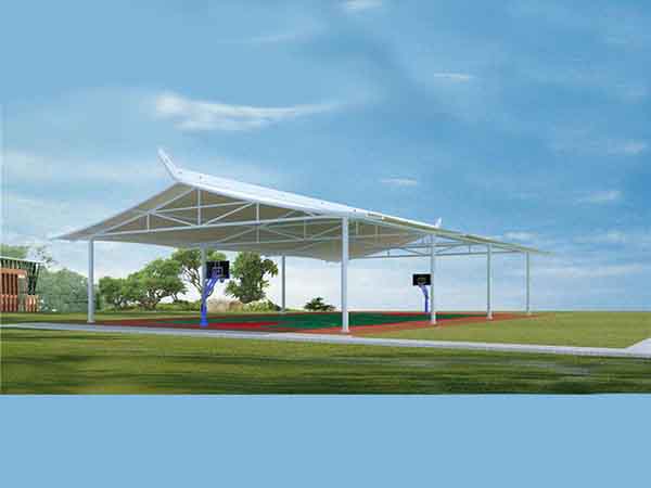 籃球場膜結(jié)構(gòu)罩棚是指安裝在籃球場上方的膜結(jié)構(gòu),起到遮陽擋雨的作用。對于場地要求低,基本上所有籃球場地都可以做膜結(jié)構(gòu)頂棚,相比混凝土結(jié)構(gòu)的風(fēng)雨球館,施工周期更短,造價更低。膜的透光性比較好,所以可以保證場館內(nèi)的采光。先設(shè)計,然后進(jìn)行材料加工,現(xiàn)場安裝,施工效率更高。下面介紹一下我們在日喀則市周邊縣市完工的一些籃球場膜結(jié)構(gòu)罩棚設(shè)計施工案例。