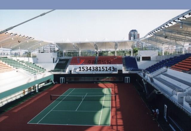 德國漢堡網(wǎng)球場膜結構展開面積約10000平方米,采用PVC(PVDF面層)膜材。并且選用能夠滿足要求的更薄的膜材型號。屋蓋是可開合式的膜結構,可縮進的膜結構棚蓋可以在任何惡劣的天氣時,將棚蓋關上;在天氣轉好時打開。以確保在任何季節(jié)里網(wǎng)球比賽的舉行,或避免時重要的賽事中斷或延遲。此建筑充分發(fā)揮了索膜結構重量輕、造型靈活的優(yōu)點。