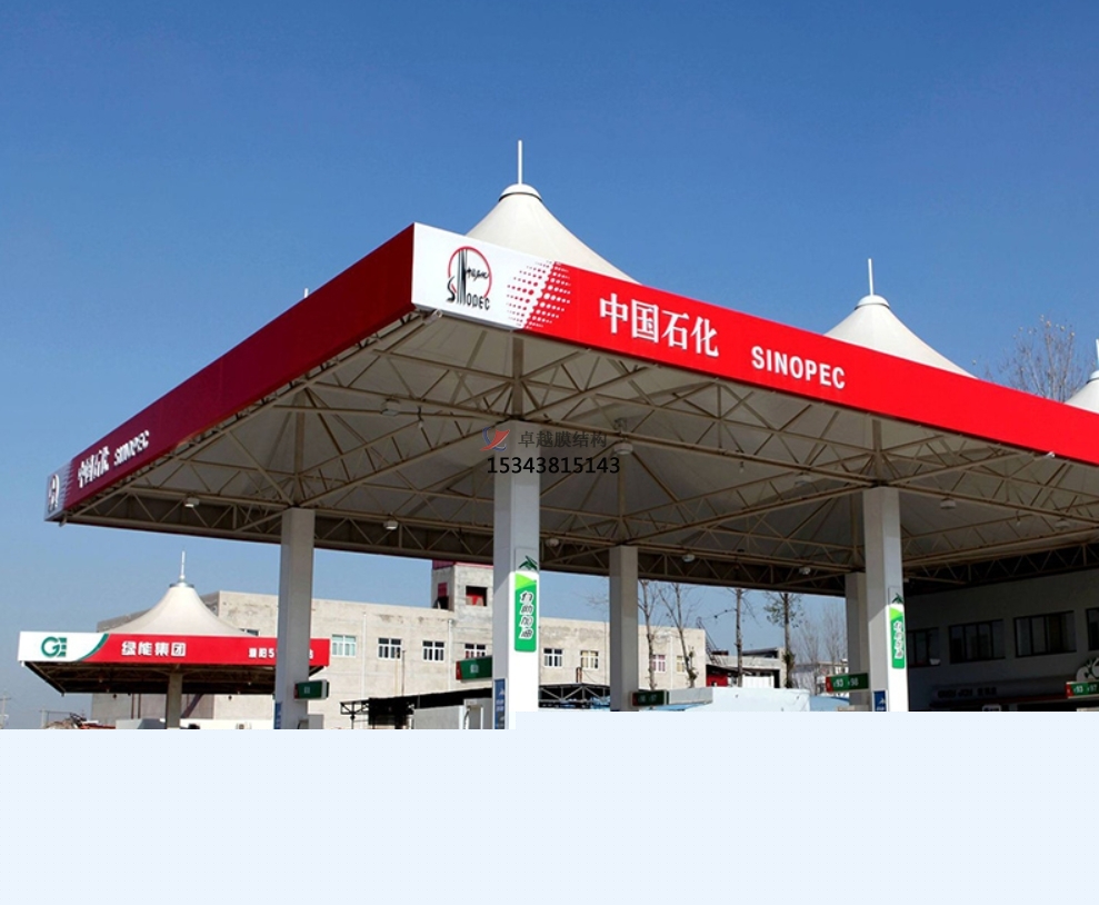 加油站主要是為機(jī)動(dòng)車(chē)提供燃油的場(chǎng)所,外觀(guān)醒目、具有良好親和力的加油站能吸引更多客源、為自己的生意紅火平添一份動(dòng)力。加油站膜結(jié)構(gòu)憑借其顯著區(qū)別與其他結(jié)構(gòu)的獨(dú)特外形,能迅速的抓住顧客的眼球,瞬時(shí)拉近與顧客的距離。