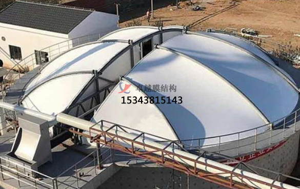 目前,污水池密封可采用的設(shè)計(jì)方案: 鋼支撐反吊膜、無(wú)骨架密封集氣罩、 懸索反吊膜等不同的設(shè)計(jì)方案,每種設(shè)計(jì)方案材料的用量都會(huì)有很大區(qū)別。一般采用鋼支撐反吊膜的較多,跨度太大時(shí)可以選擇無(wú)骨架密封集氣置、懸索反吊膜等解決方案。