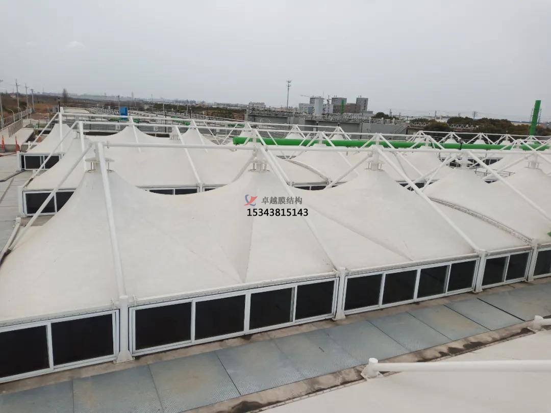 在運輸污水池膜材時,盡量將蓋板分成小塊搬運。這樣不僅時利于拆卸及人工的搬運.同時也省去了調(diào)用大型設(shè)備的成本。在各個膜材板運輸?shù)轿缓?在進(jìn)行拼接安裝時.各個小塊膜材之間、膜材和水池頂面之間需要密封連接,這樣可以有效防止臭氣泄漏。在我們拼接安裝完成之后,可以先用水或是空氣來代替臭氣進(jìn)行調(diào)試.檢測其安裝結(jié)果是否達(dá)到了密封性效果,檢查蓋板有無滴、漏、冒等現(xiàn)象。在進(jìn)行著一系列檢驗工作完成之后.才能正常使用。