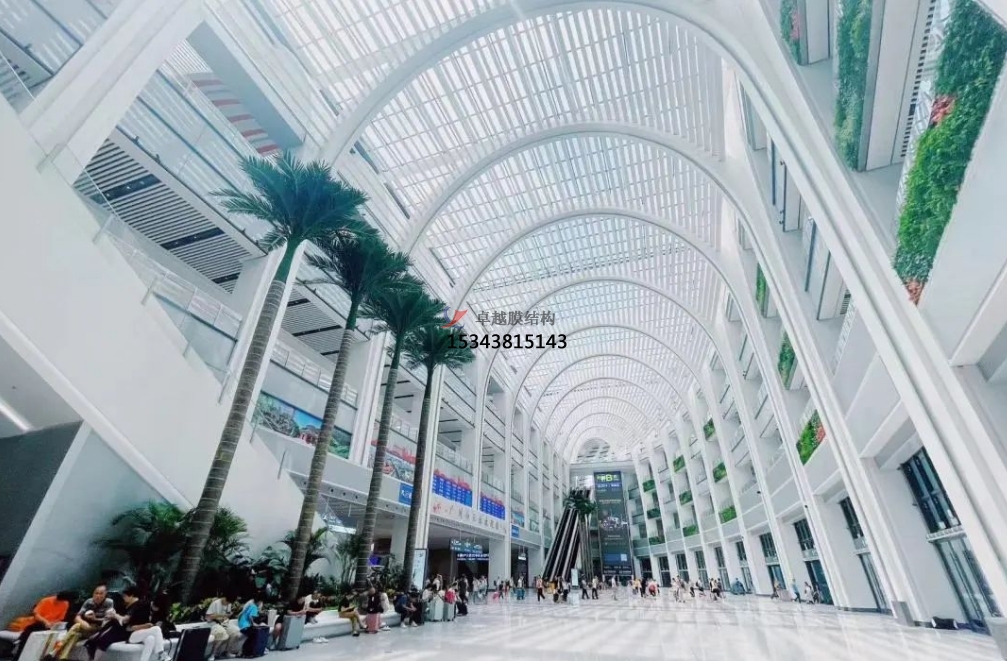 膜材料抗腐蝕能力強,化學性能穩(wěn)定,使用壽命可長達15-25年。且膜結構能夠承受一定外荷載,確保高鐵站的安全運行。