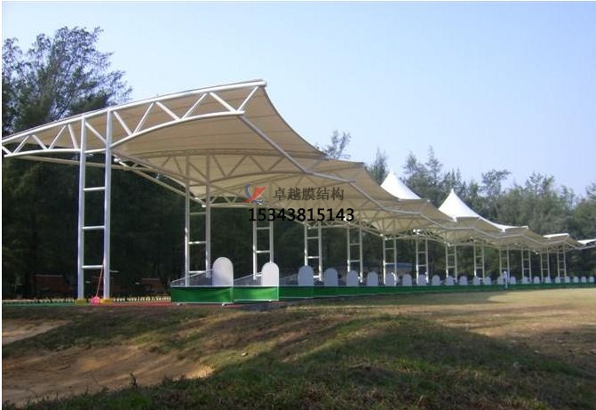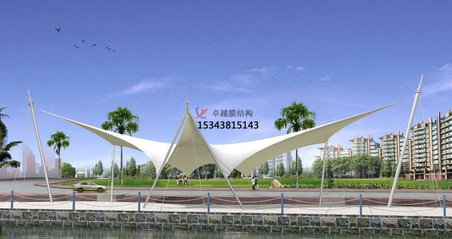 作為一種柔性材料,其在建筑上的造型變化多端,是其它材料所不能比擬的,因此也造就了景觀膜結(jié)構(gòu)遮陽棚多變的特性,充分體現(xiàn)出建筑形體塑造力和輕盈、飄逸的動感曲線外觀。
