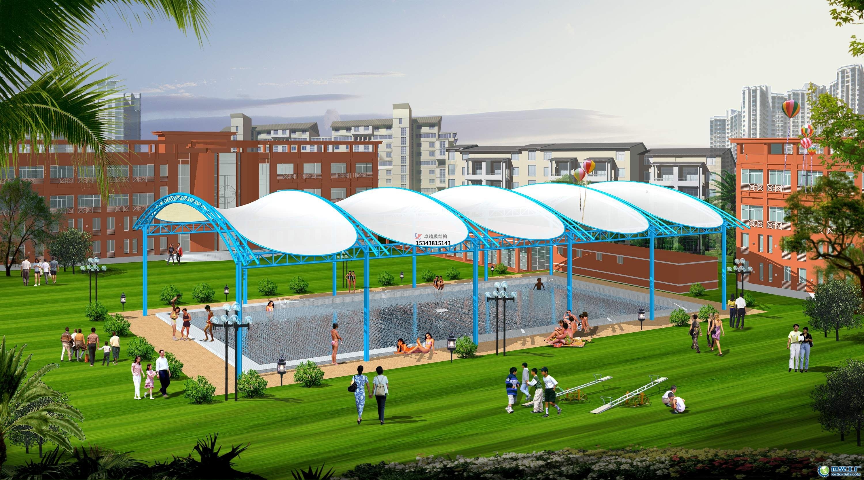 6.施工安裝到位。膜結(jié)構(gòu)的制作分為膜的裁剪、連接、配件的制作加工、包裝、運(yùn)輸。制作應(yīng)符合以下工藝流程:膜材驗(yàn)收,技術(shù)參數(shù)的確定,膜的裁剪,裁剪膜片的幾何尺寸的檢驗(yàn),膜片的連接,連接強(qiáng)度的檢驗(yàn),膜體的幾何外形的檢驗(yàn),連接件定位固定,膜體的清理,膜體的包裝,標(biāo)記。
