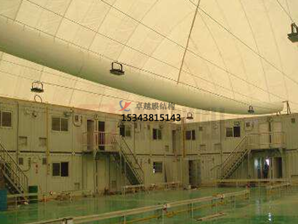 2、膜結(jié)構(gòu)是目前發(fā)展很快的一種新型空間結(jié)構(gòu),是一種效率極高的張力集成體系,可以充分發(fā)揮鋼索的強(qiáng)度與張拉整體結(jié)構(gòu)的空間作用。它通過鋼骨架、鋼索、充氣與膜材共同受力形式穩(wěn)定曲面來覆蓋建筑空間,具有高度的形體可塑性和結(jié)構(gòu)靈活性,即通過對(duì)膜材內(nèi)部施加一定的預(yù)張力,使其具備了抵抗外荷載能力,從而充當(dāng)結(jié)構(gòu)材料的一種結(jié)構(gòu)體系。我公司先后在伊寧地區(qū)承接球場(chǎng)頂棚罩棚設(shè)計(jì)施工案例,簡(jiǎn)介如下:
