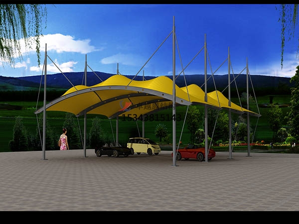 而在膜結(jié)構(gòu)材料上,通過支撐和張拉索就能構(gòu)成。所以膜結(jié)構(gòu)車棚可以通過自身柔美的曲線和周圍的藝術(shù)景觀結(jié)合起來,給人以美的享受。