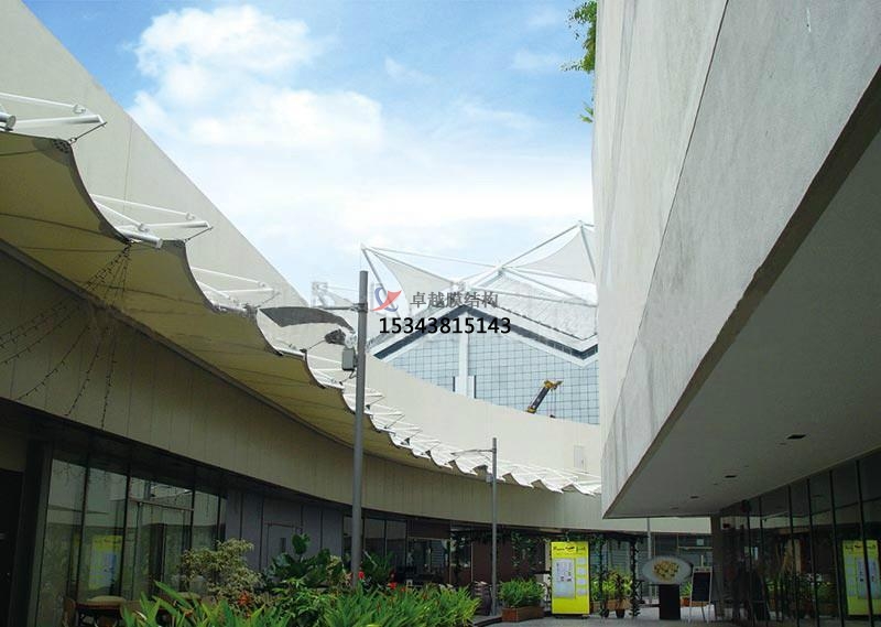 咱們都知道張拉膜是鋼索從邊上穿過,拉出幾個角并固定在不同的高度之上,會構(gòu)成凹凸落差,這樣的落差看起來是很美好的,相對的打開面積就會大許多,由于在占地面積的暗影中,實踐許多是堆疊不筆直的。