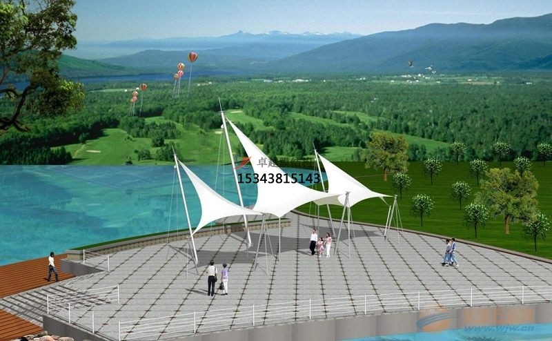 張拉膜景觀是一種建筑與結(jié)構(gòu)完美結(jié)合的結(jié)構(gòu)體系;它是用高強度柔性薄膜材料與支撐體系相結(jié)合形成具有一定剛度的穩(wěn)定曲面,能承受一定外荷載的空間結(jié)構(gòu)形式;這種結(jié)構(gòu)形式特別適用于大型體育場館、人口廊道、小品、公眾休閑娛樂廣場、展覽會場、購物中心等領(lǐng)域。
