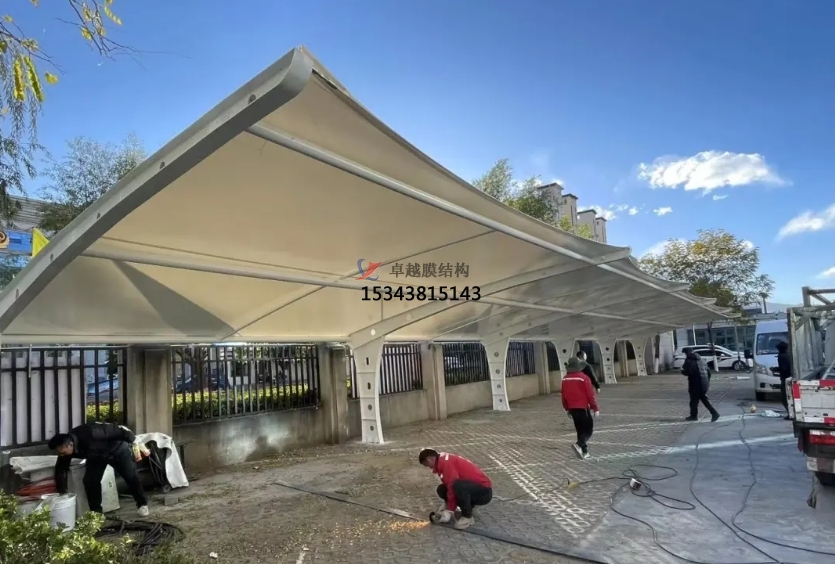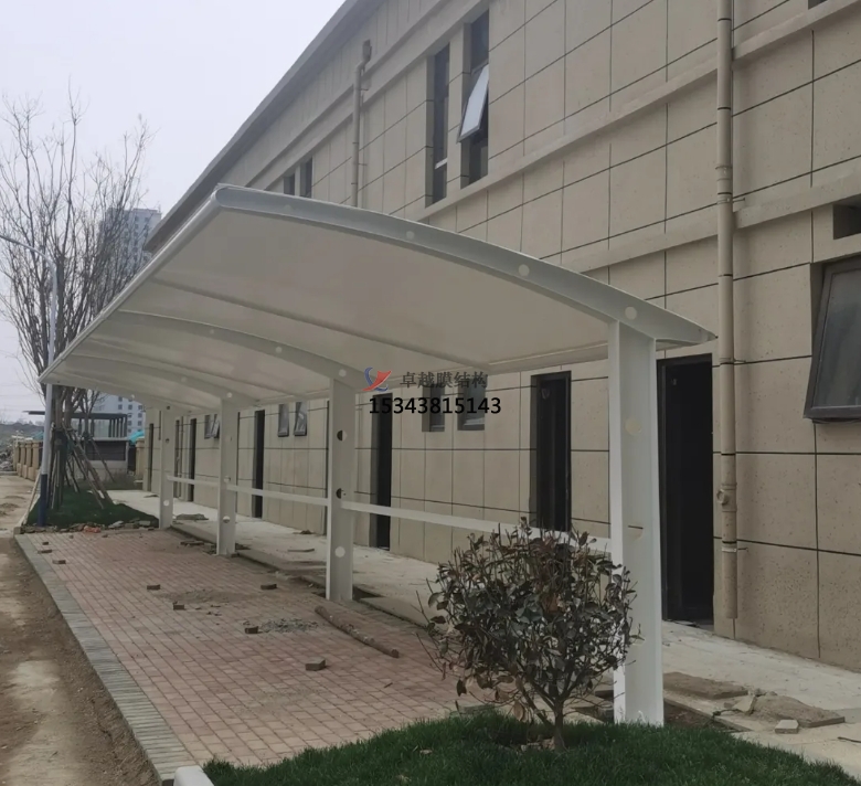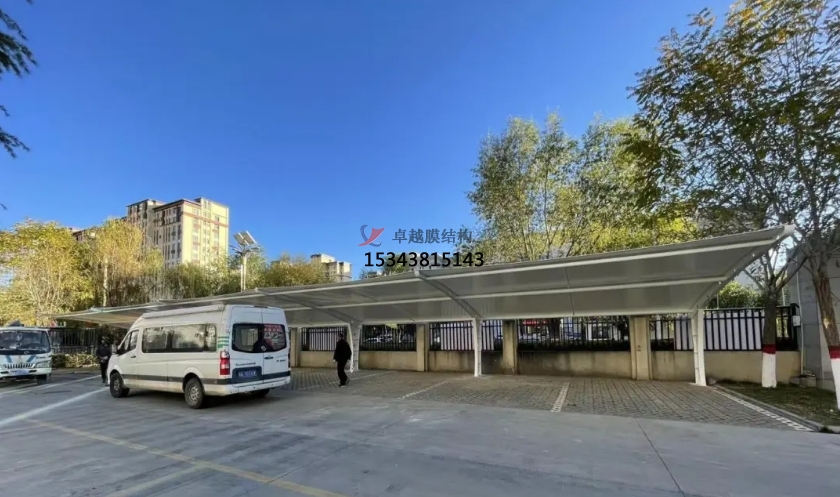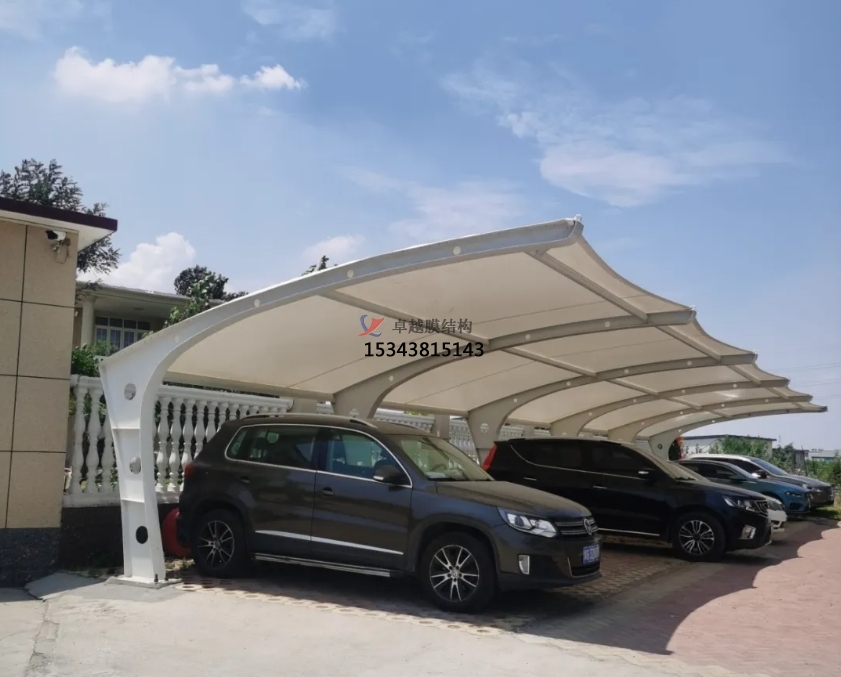 除了停車功能外,7字型膜結(jié)構(gòu)車棚的一側(cè)可以與建筑物相連,形成一個(gè)過(guò)渡空間。這個(gè)過(guò)渡空間可以有多種用途,比如作為行人的遮雨棚、自行車停放處,或者設(shè)置為休息區(qū)。這種多功能的設(shè)計(jì),為人們的生活和使用帶來(lái)了更多的便利,提升了整個(gè)區(qū)域的實(shí)用性。