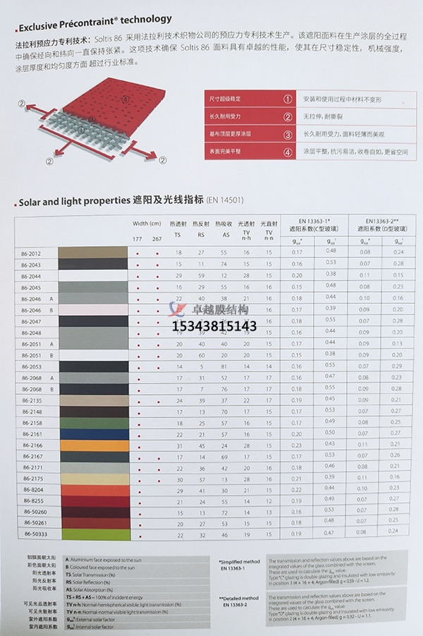 法拉利膜材十多年來,法拉利(PVDF)表面處理的復(fù)合膜材被應(yīng)用在全世界重要的織物建筑工程中。現(xiàn)在,第代膜材再次確認了這一出眾材料性能的更新發(fā)展。法拉利研發(fā)了第代材料正是為了滿足建筑師和業(yè)主在新世紀之初對于織物建筑提出的要求。這一 全新的膜材得益于更新的科研技術(shù),即將PVDF和硬化介體完美地結(jié)合。這種特殊的結(jié)合明顯地提高了材料的機械強度、使用壽命,并能長期保持織物建筑的原始 美觀。第代膜材在積累了10多年的經(jīng)驗的基礎(chǔ)上,可以提供專業(yè)保證。法拉利現(xiàn)在能夠根據(jù)要求和每個項目的具體情況,提供12年質(zhì)量保證 (PRECONTRAINT702除外)。