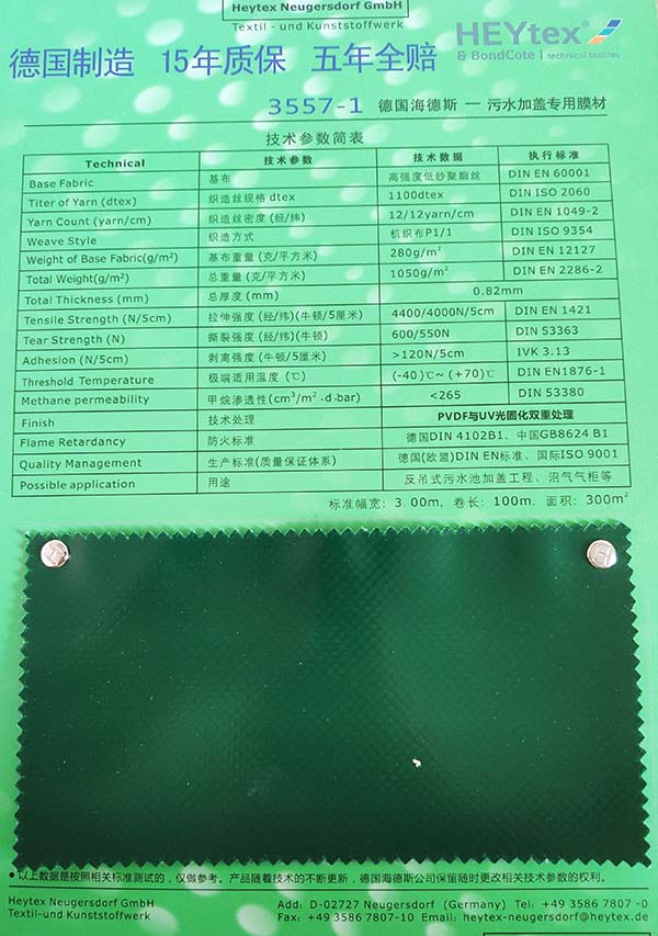 II. HeytexH5573建筑膜材為新一代可焊式PVDF復(fù)合材料,雙面PVDF涂層,直接焊接,10年質(zhì)保。