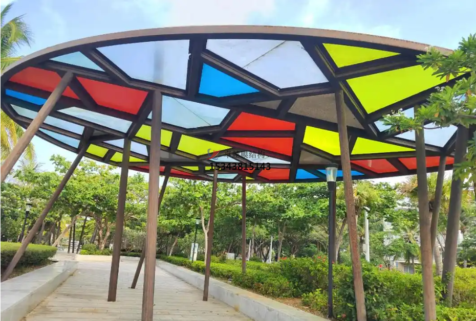 在實(shí)際應(yīng)用中,PVDF膜材常常被用于各類膜結(jié)構(gòu)屋頂,遮陽棚停車棚等場景。在炎熱地區(qū)采用PVDF膜布建造的停車棚不僅能有效阻擋陽光直射,降低車內(nèi)溫度還能通過自身的反光特性減少熱輻射;而在寒冷地帶,這種材料則以其良好的保溫性能幫助建筑物節(jié)約能源成本??梢哉fPVDF膜布的應(yīng)用場景幾乎涵蓋了所有需要柔性覆蓋材料的地方。